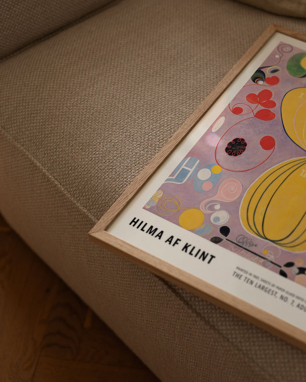 100 × 140 cm is our largest format and is known as the XL poster. It is an impressive size and is the ultimate statement on a large wall in any room it appears in. Its size makes it ideal for a large wall where it can stand alone or be combined with other furniture. You can also style it with a bench underneath, a lamp, or a chair beside it to create a harmonious balance in the interior.