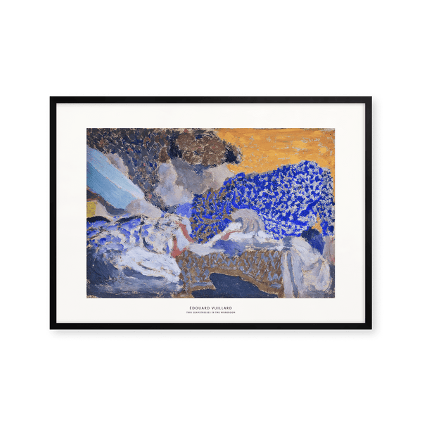 The art print: 'Two Seamstresses in the Workroom' by artist Edouard Vuillard is a painted work of art recreated as a poster by Peléton. This poster series of Edouard Vuillard's colorful art posters with unique patterns, is characterised by his pure colours, and interior scenes, influenced by Japanese art. This poster is part of Peléton's vintage collection with museum layout. The art poster is produced on quality paper, with long life, and detailed colour reproduction.