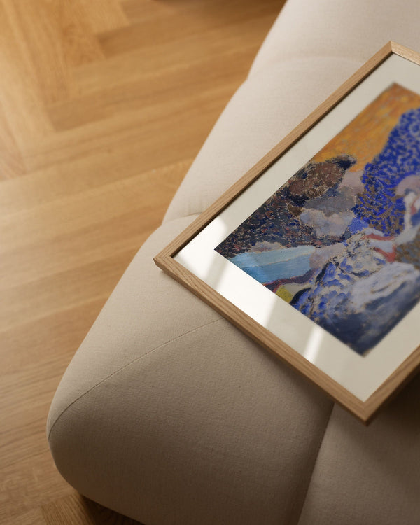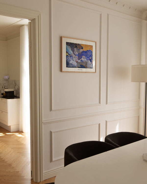 100 × 140 cm is our largest format and is known as the XL poster. It is an impressive size and is the ultimate statement on a large wall in any room it appears in. Its size makes it ideal for a large wall where it can stand alone or be combined with other furniture. You can also style it with a bench underneath, a lamp, or a chair beside it to create a harmonious balance in the interior.