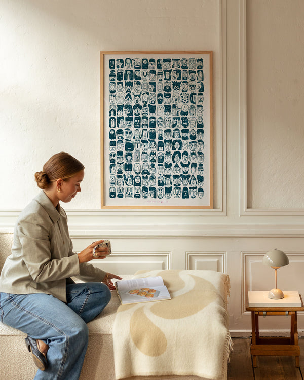 100 × 140 cm is our largest format and is known as the XL poster. It is an impressive size and is the ultimate statement on a large wall in any room it appears in. Its size makes it ideal for a large wall where it can stand alone or be combined with other furniture. You can also style it with a bench underneath, a lamp, or a chair beside it to create a harmonious balance in the interior.