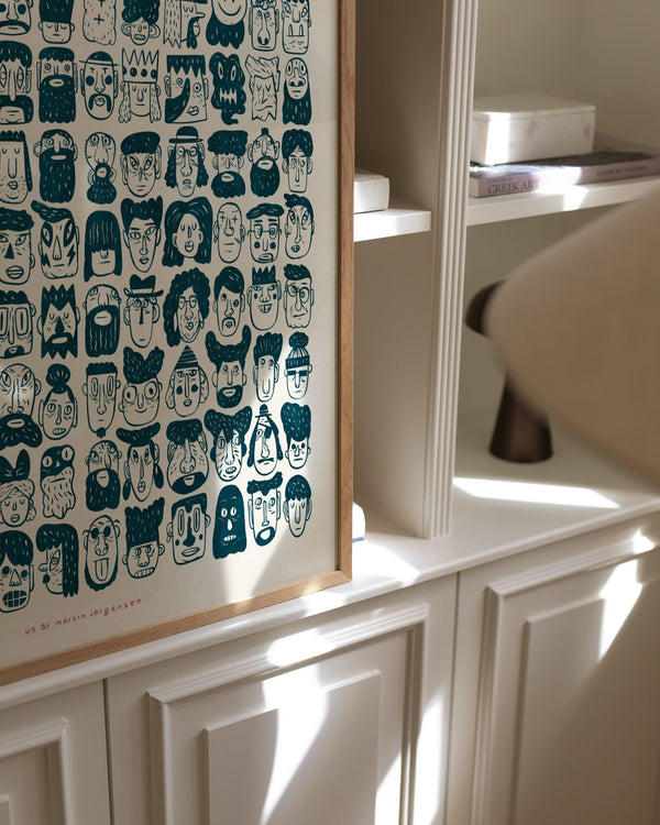 The art poster "Us" by artist Martin Jørgensen is an illustrated poster curated by Peléton. It has been important to Martin Jørgensen that the poster is open to interpretation.