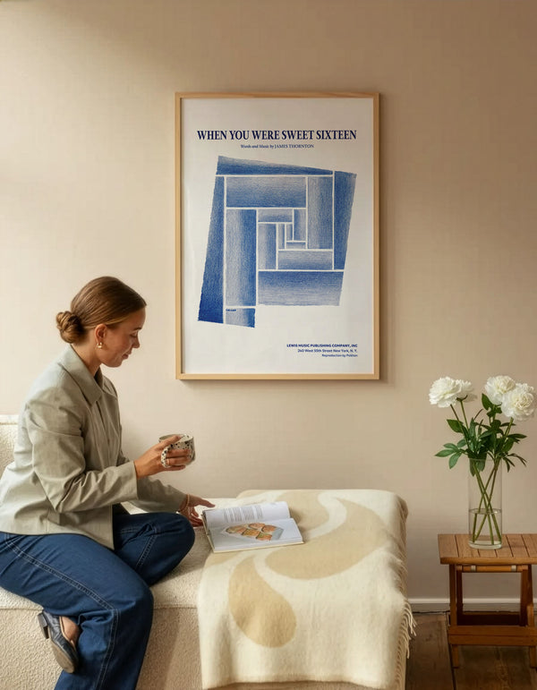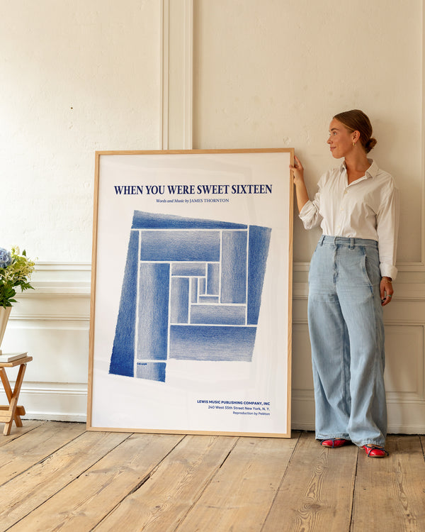 Kunstplakaten: “When You Were Sweet Sixteen” af James Thornton er en illustreret plakat, der er genskabt af Peléton. Denne plakat er en del af Pelétons vintage kollektion med museums layout. Kunstplakaten er produceret på kvalitetspapir, med lang levetid, høj gennemtræk og detaljerig farvegengivelse.