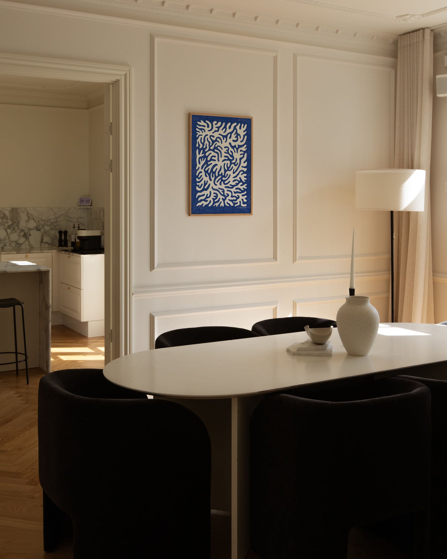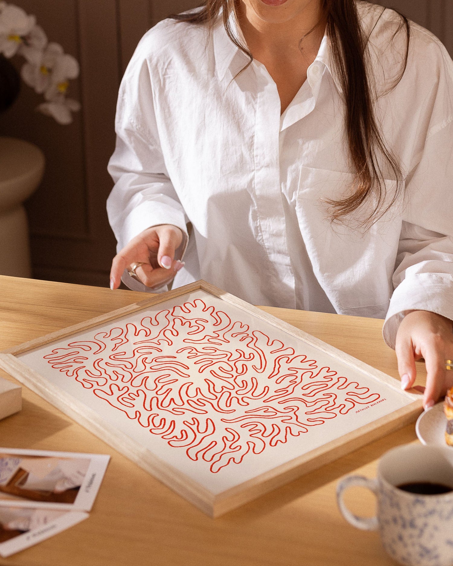 Alle værker bliver trykt og indrammet på bestilling i vores produktion i København. Vi sender inden for 2-4 hverdage, så du hurtigt kan nyde din nye kunstplakat derhjemme – uden at gå på kompromis med kvalitet eller finish.