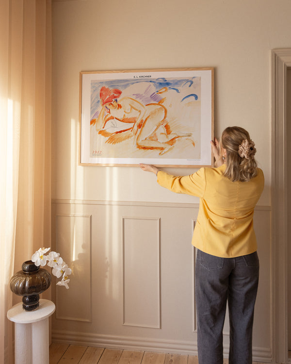 Kunstplakaten: “Akt mit rotem Hut” af kunstneren Ernst Ludwig Kirchner er en illustreret plakat, der er genskabt af Peléton. Denne plakat er en del af Pelétons vintage kollektion med museums layout. Kunstplakaten er produceret på kvalitetspapir, med lang levetid, høj gennemtræk og detaljerig farvegengivelse.