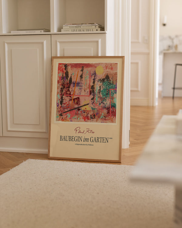 Kunstplakaten: “baubegin im garten” af kunstneren Paul Klee er en abstrakt illustreret plakat, der er genskabt af Peléton. Denne plakat serie med Paul Klees farverige og abstrakte kunstplakater, er karakteriseret ved hans opfindsomme og unikke teknikker. Denne plakat er en del af Pelétons vintage kollektion med museums layout. Kunstplakaten er produceret på kvalitetspapir, med lang levetid, høj gennemtræk og detaljerig farvegengivelse.