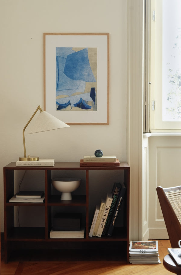 Kunstplakaten “Blå tilføjelse 2” af arkitekt og kunstner Simone Vestergaard er en trykt plakat, der er lavet eksklusivt til Peléton. Plakaten er en del af en serie af abstrakte plakater, der udforsker relationen mellem form og farve, stilhed og dynamik, tæthed og transparens. Derudover fokuserer hver plakat i serien på principper som tilføjelser, forskydninger, rotationer og spejlinger.
