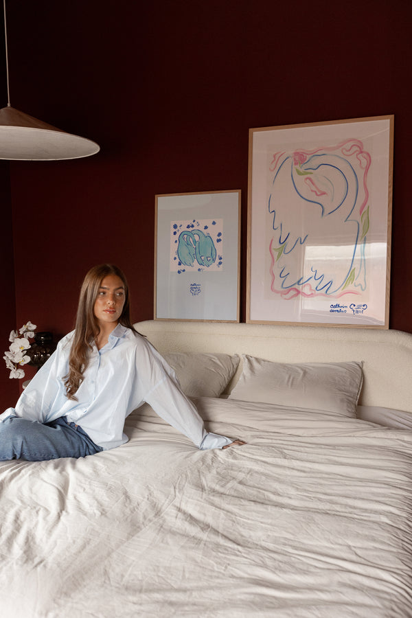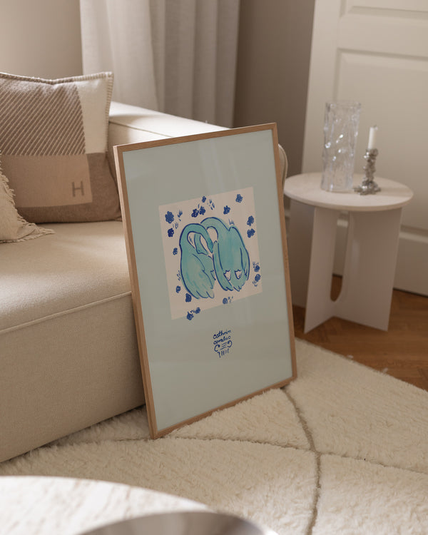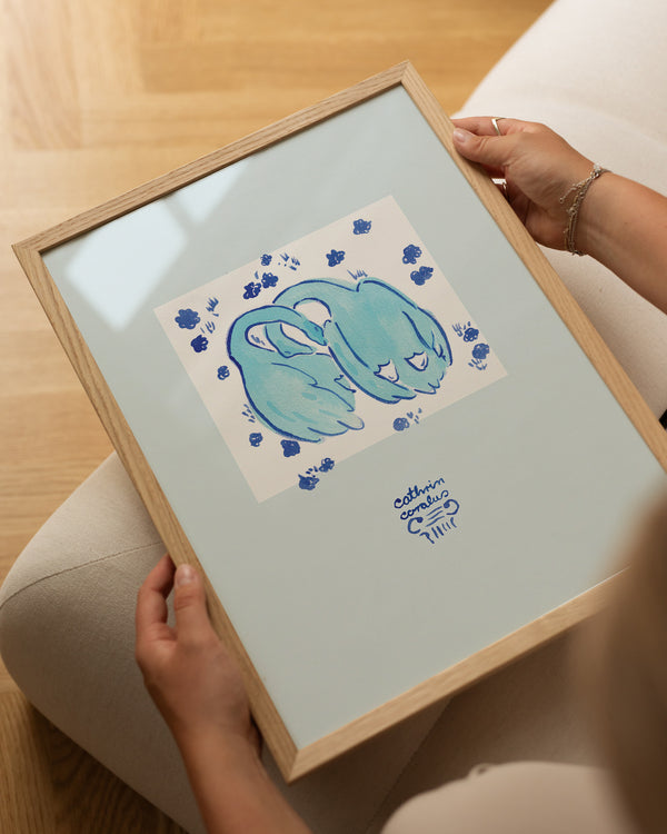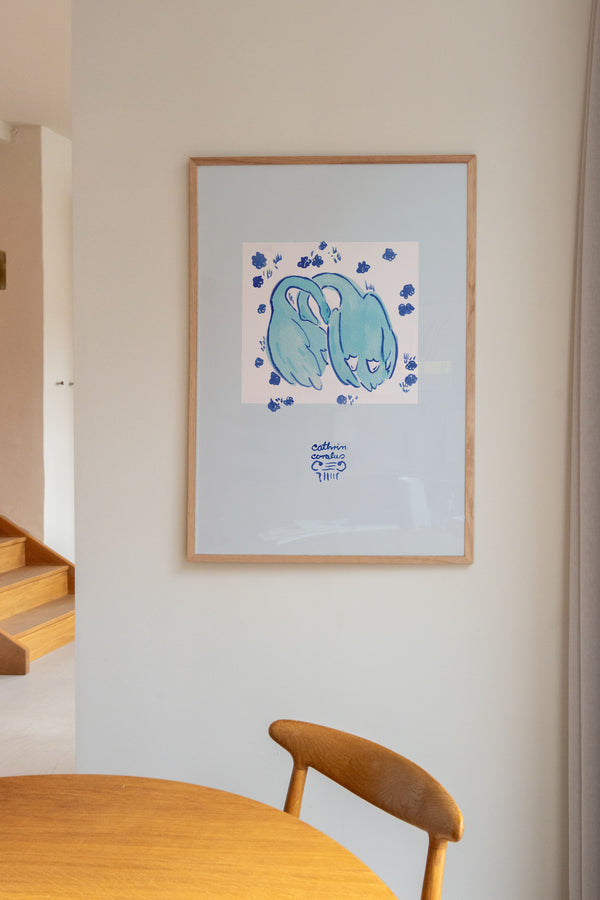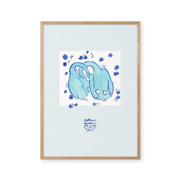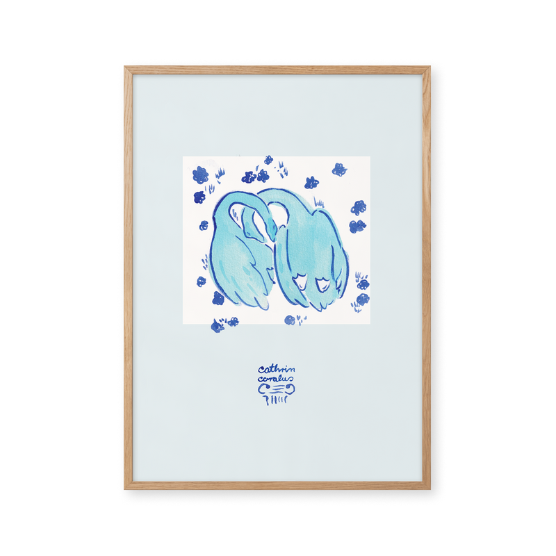 Cathrin Coralus kunstplakat "Blue Geese" er en del af en farverig kollektion skabt eksklusivt til Peléton. Motiverne hylder legende kompositioner, stærke farver og Cathrins finurlige billedunivers, hvor sentimentale temaer og en kunstnerisk lethed går hånd i hånd.