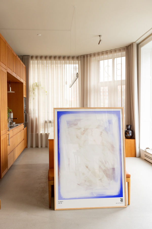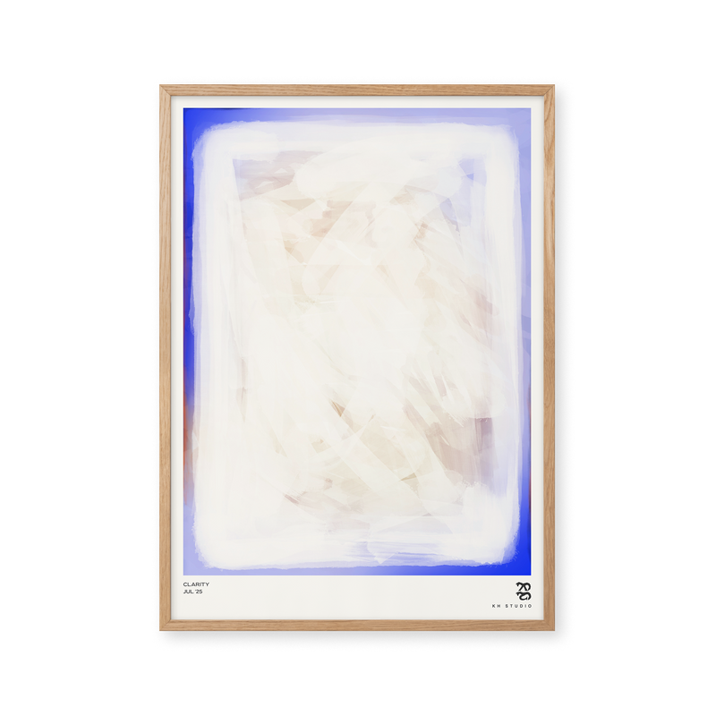 Karla Hymans kunstplakat "Clarity" er en del af en farverig kollektion udviklet specielt til Peléton, og som hylder legende kompositioner og stærke farvevalg. Hendes værker er præget af en enkel og abstrakt stil, hvor form og farver spiller tæt sammen.