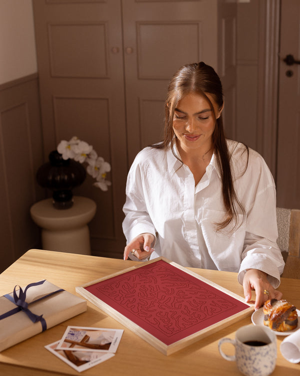 Alle værker bliver trykt og indrammet på bestilling i vores produktion i København. Vi sender inden for 2-4 hverdage, så du hurtigt kan nyde din nye kunstplakat derhjemme – uden at gå på kompromis med kvalitet eller finish.