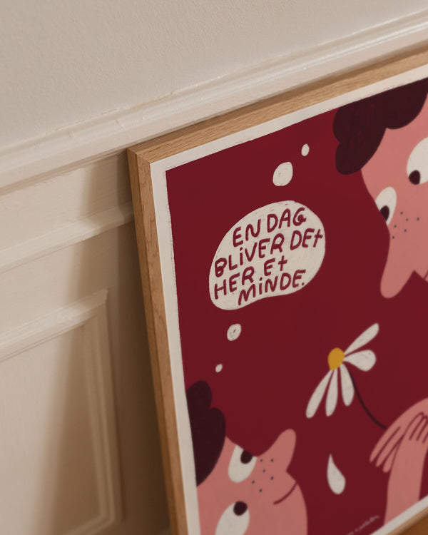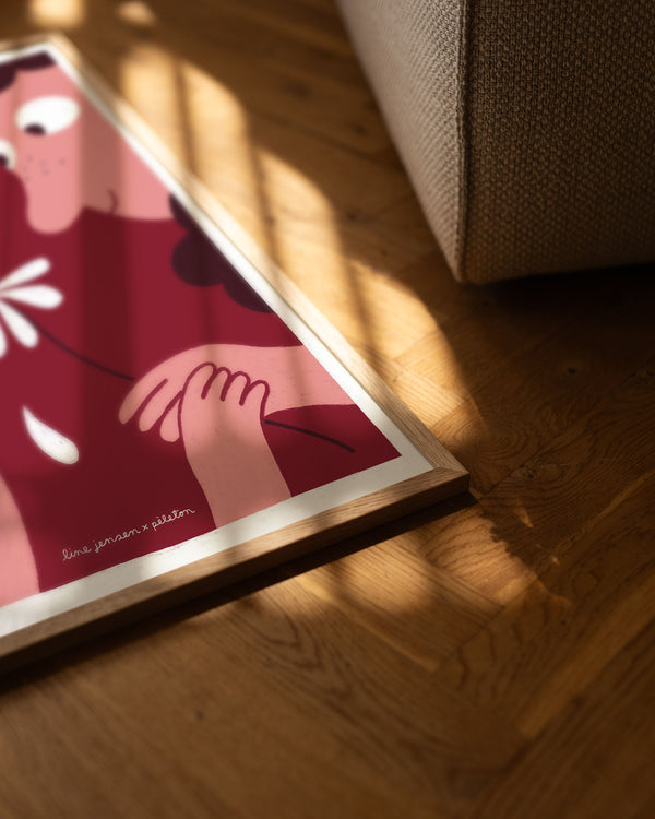 Kunstplakaten: “En dag bliver det her et minde - rød” af kunstneren Line Jensen er en illustreret plakat der er kurateret af Peléton. Det har været betydningsfuldt for Line Jensen, at plakaten står til fri fortolkning.