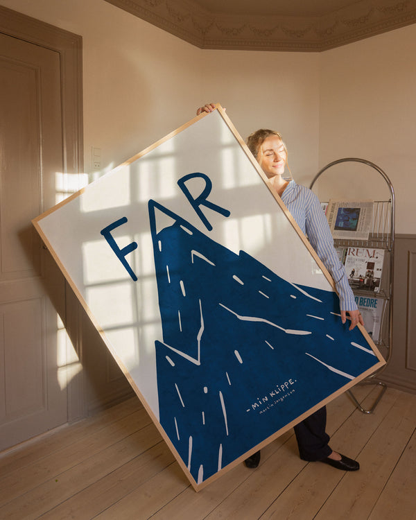 Kunstplakaten: “Far klippe - blå” af kunstneren Martin Jørgensen er en illustreret plakat der er kurateret af Peléton. Det har været betydningsfuldt for Martin Jørgensen, at plakaten står til fri fortolkning.