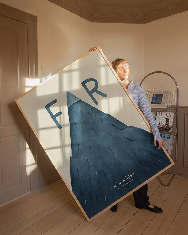 Kunstplakaten: “Far min klippe” af kunstneren Martin Jørgensen er en illustreret plakat der er kurateret af Peléton. Det har været betydningsfuldt for Martin Jørgensen, at plakaten står til fri fortolkning.