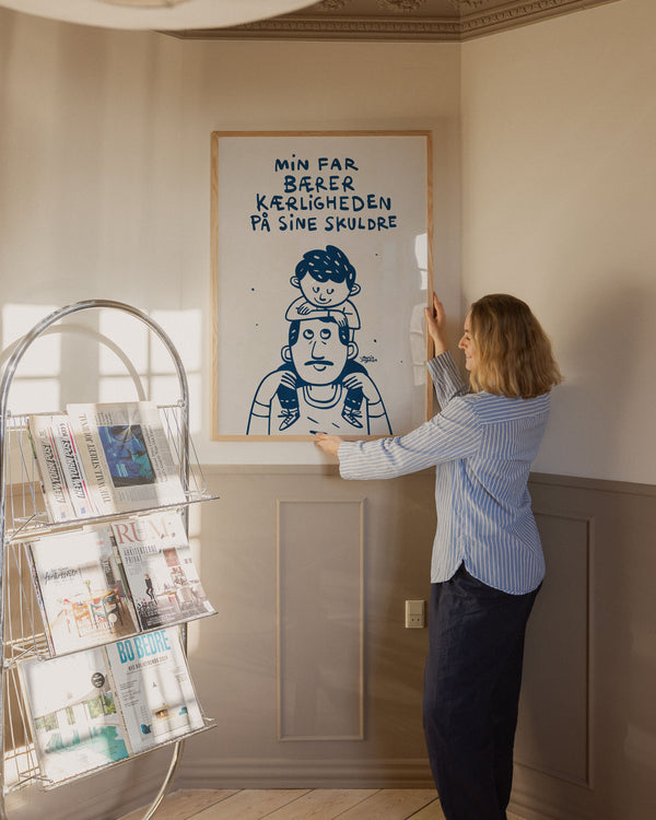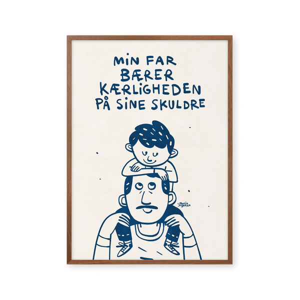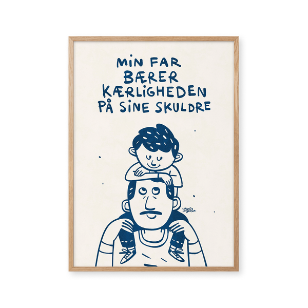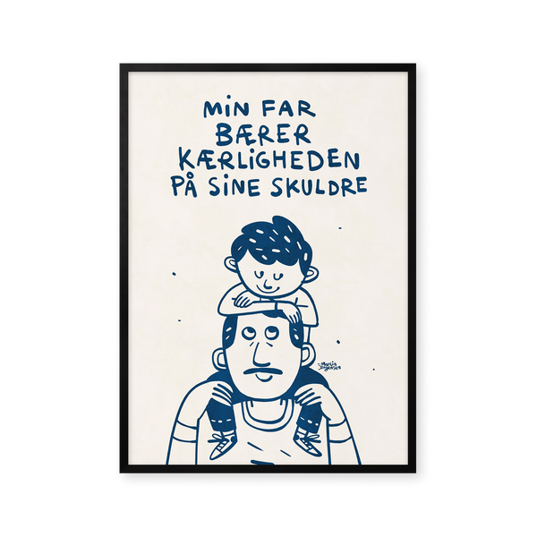 Kunstplakaten: “Fars skuldre” af kunstneren Martin Jørgensen er en illustreret plakat der er kurateret af Peléton. Det har været betydningsfuldt for Martin Jørgensen, at plakaten står til fri fortolkning.