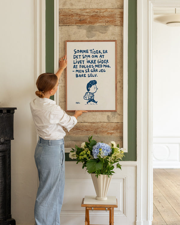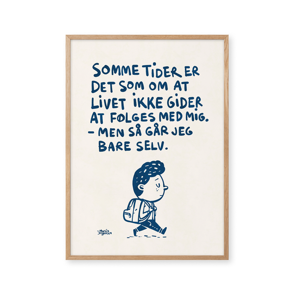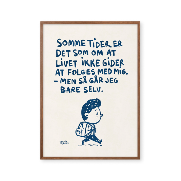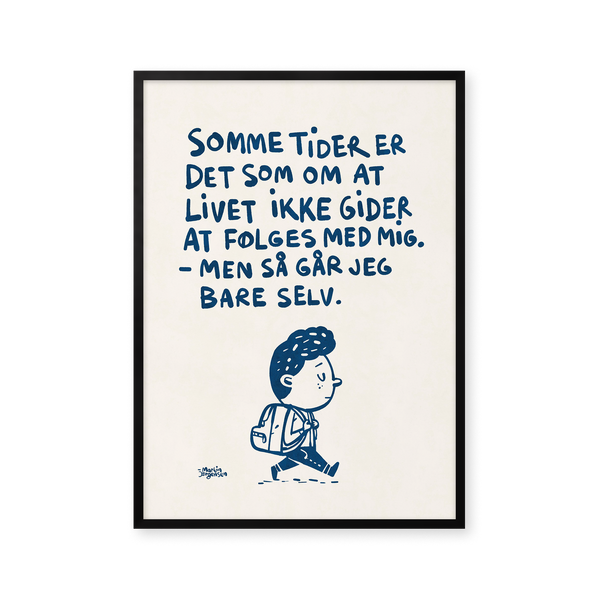 På plakaten ses citatet: Somme tider er det som om at livet ikke gider at følges med mig. - Men så går jeg bare selv.