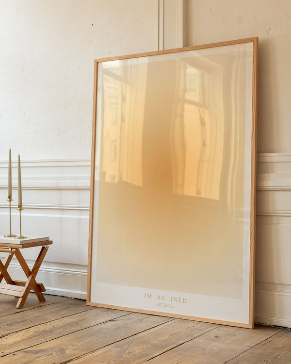 Kunstplakaten: “IMAGINED” af kunstnerne Mie & Him er en grafisk illustreret plakat der er kurateret af Peléton. Det har været betydningsfuldt for dem, at plakaten står til fri fortolkning. Farven gul symboliserer lykke og fantasi - en glad farve, der stimulerer entusiasme og selvtillid. Dette værk er en del af en samling af selvstændige ord og deres leksikalske definition.