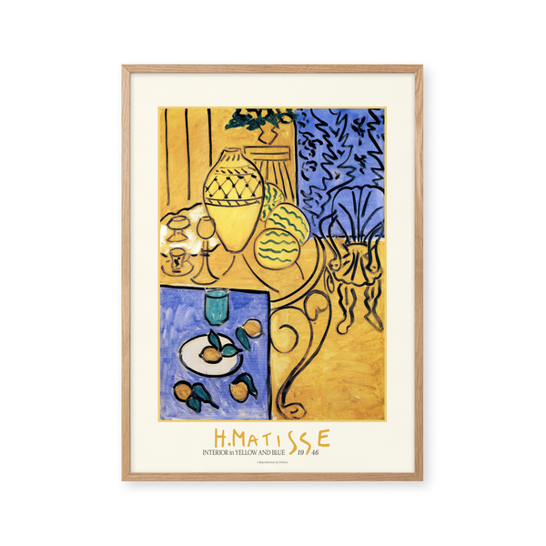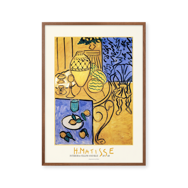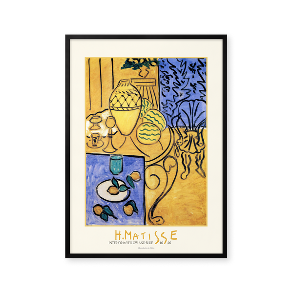 Kunstplakaten: “Interior In Yellow And Blue” af kunstneren Henri Matisse er en malet plakat, der er genskabt af Peléton. Denne plakat er en del af Pelétons vintage kollektion med museums layout. Kunstplakaten er produceret på kvalitetspapir, med lang levetid, høj gennemtræk og detaljerig farvegengivelse.