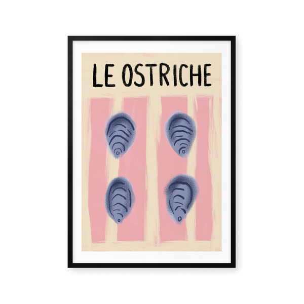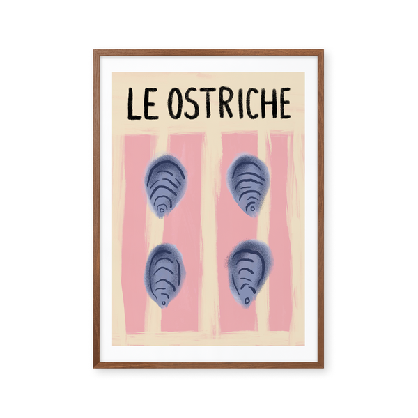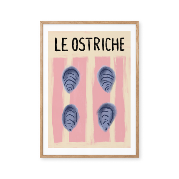 Kunstplakaten "Le Ostriche" af kunstneren Allison Poplett er en illustreret plakat, der er kurateret for Peléton. Kunstplakaten er produceret på kvalitetspapir, med lang levetid og detaljerig farvegengivelse.