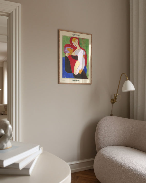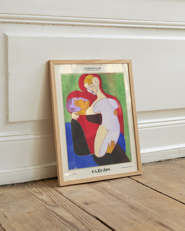 Kunstplakaten: “Liebespaar” af kunstneren Ernst Ludwig Kircher er en abstrakt illustreret plakat, der er genskabt af Peléton. Denne plakat er en del af Pelétons vintage kollektion med museums layout. Kunstplakaten er produceret på kvalitetspapir, med lang levetid, høj gennemtræk og detaljerig farvegengivelse.