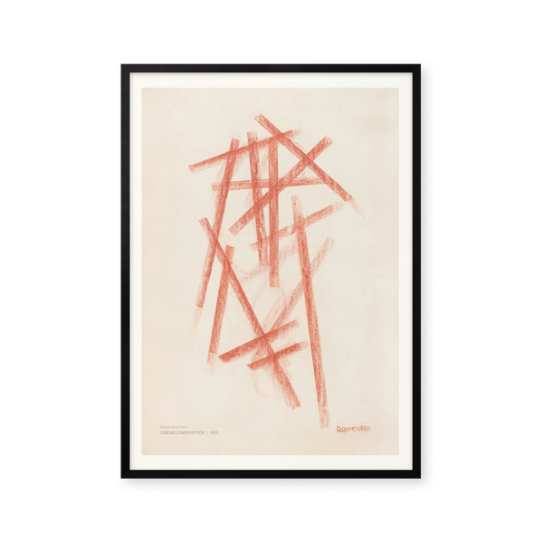 Kunstplakaten: “Linear Composition” af kunstneren Alexander Rodchenko er en malet plakat, der er genskabt af Peléton. Denne plakat er en del af Pelétons vintage kollektion med museums layout. Kunstplakaten er produceret på kvalitetspapir, med lang levetid, høj gennemtræk og detaljerig farvegengivelse.