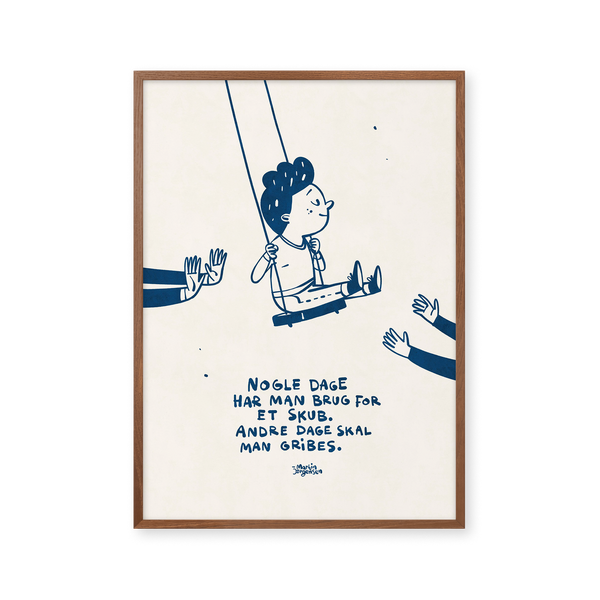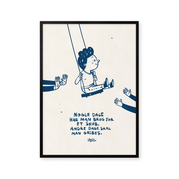 På plakaten ses citatet: Nogle dage har man brug for at skub. andre dage skal man gribes.