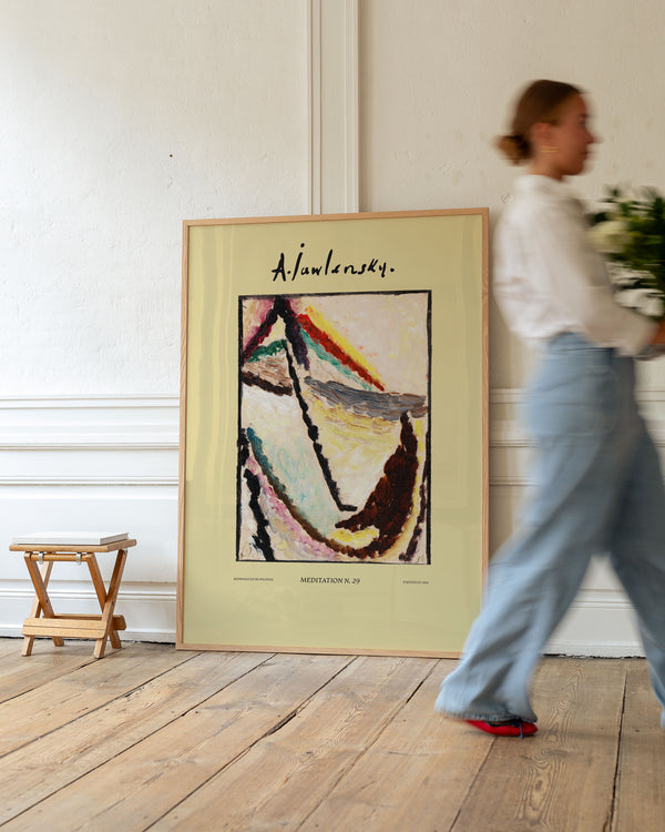 Kunstplakaten: “meditation n. 29” af kunstneren Alexej von Jawlensky er en abstrakt illustreret plakat, der er genskabt af Peléton. Denne plakat er en del af Pelétons vintage kollektion med museums layout. Kunstplakaten er produceret på kvalitetspapir, med lang levetid, høj gennemtræk og detaljerig farvegengivelse.