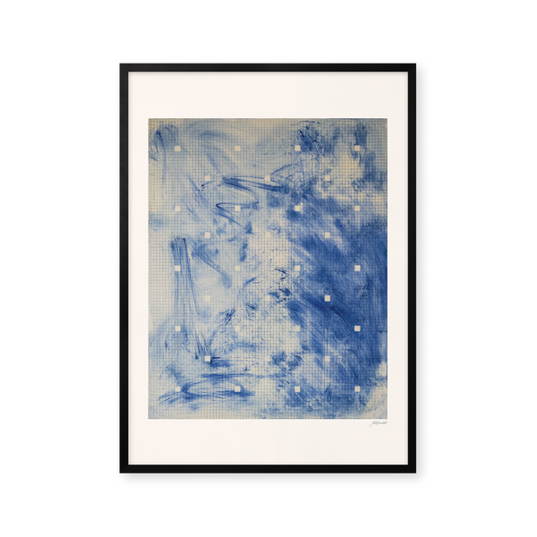 Kunstplakaten "Monotype – Light Blue" er en del af Julie Barnes Dahls eksklusive monotopi-kollektion for Peléton. Kunstformen monotopi tager afsæt i det kvadrerede matematikhæfte, hvor griddet skaber systematik og gentagelse, men åbner også op for et frit, drømmende rum. Det stringente mønster står i modsætning til de dybe, bløde farver fra tryksværten, som skaber en spænding mellem det stramme og det levende. For hende har det været vigtigt, at plakaten står til fri fortolkning.