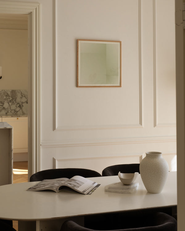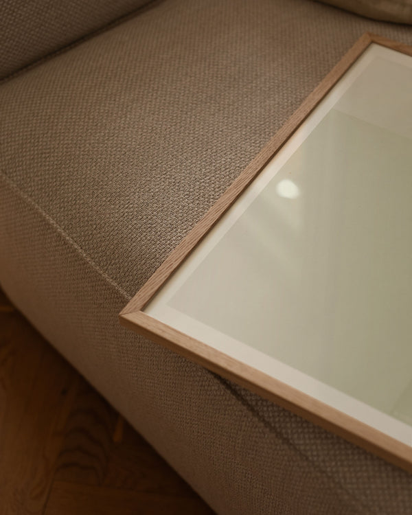 Rammerne i eg er lavet af massivt egetræ. Den mørke variant er bejdset for at opnå en dyb, varm tone, mens den sorte ramme er fremstillet af sortmalet fyrretræ med samme elegante profil.