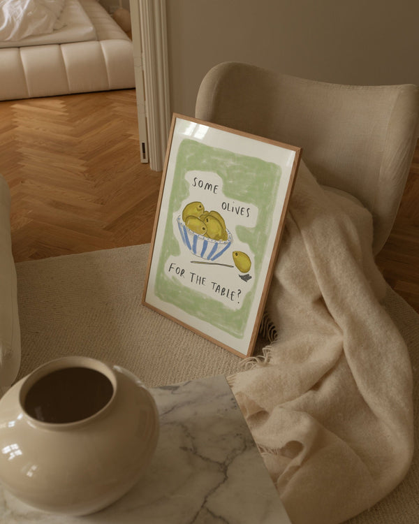 Kunstplakaten: “Olives” af kunstneren Lauren Emmett er en illustreret plakat der er kurateret af Peléton. Det har været betydningsfuldt for hende, at plakaten står til fri fortolkning.