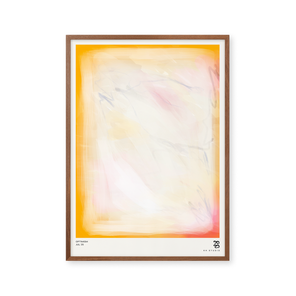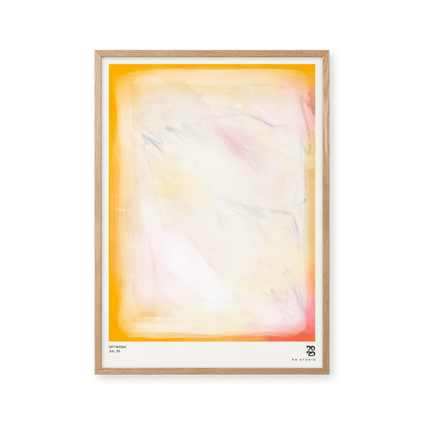 Karla Hymans kunstplakat "Optimism" er en del af en farverig kollektion udviklet specielt til Peléton, og som hylder legende kompositioner og stærke farvevalg. Hendes værker er præget af en enkel og abstrakt stil, hvor form og farver spiller tæt sammen.