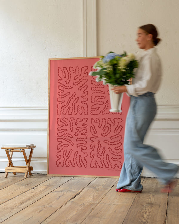 Alle værker bliver trykt og indrammet på bestilling i vores produktion i København. Vi sender inden for 2-4 hverdage, så du hurtigt kan nyde din nye kunstplakat derhjemme – uden at gå på kompromis med kvalitet eller finish.