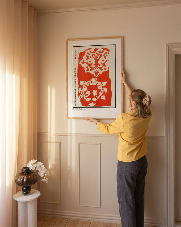 Kunstplakaten: “Red Silk Patterns” af kunstneren A. F. Stoddard & Company er en abstrakt illustreret plakat, der er genskabt af Peléton. Denne plakat er en del af Pelétons vintage kollektion med museums layout. Kunstplakaten er produceret på kvalitetspapir, med lang levetid, høj gennemtræk og detaljerig farvegengivelse.