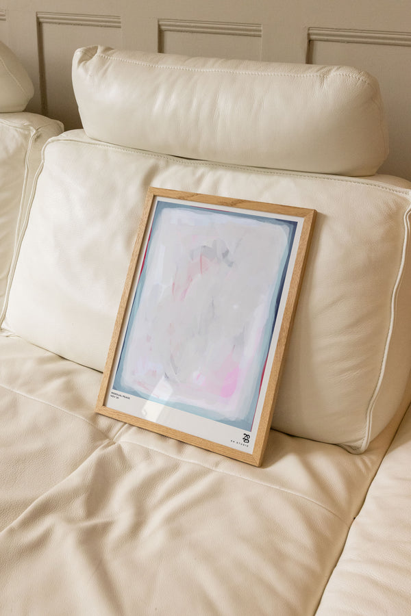 Karla Hymans kunstplakat "Residual Peace" er en del af en farverig kollektion udviklet specielt til Peléton, og som hylder legende kompositioner og stærke farvevalg. Hendes værker er præget af en enkel og abstrakt stil, hvor form og farver spiller tæt sammen.