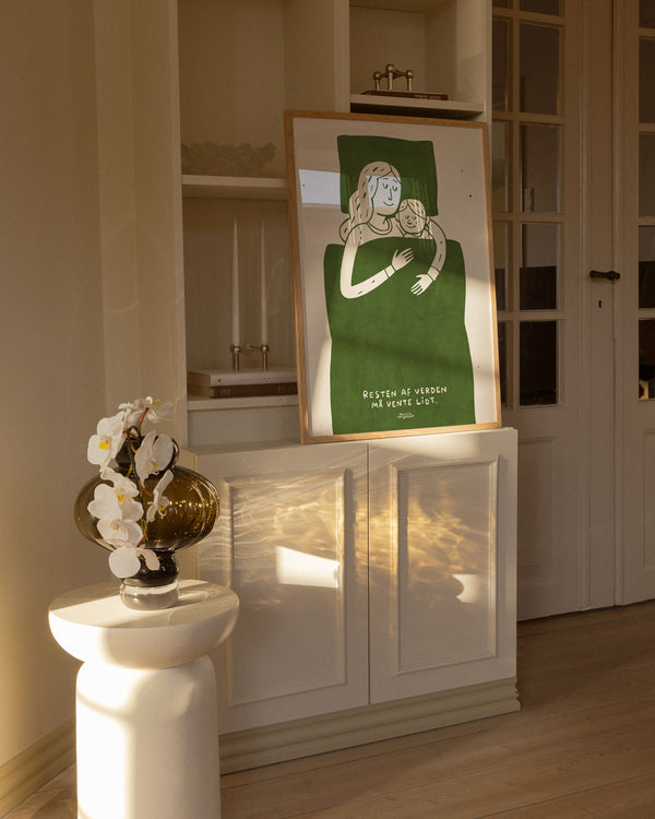 Kunstplakaten: “Resten af verden må vente lidt - grøn” af kunstneren Martin Jørgensen er en illustreret plakat, der er kurateret af Peléton. Det har været betydningsfuldt for Martin Jørgensen, at plakaten står til fri fortolkning.