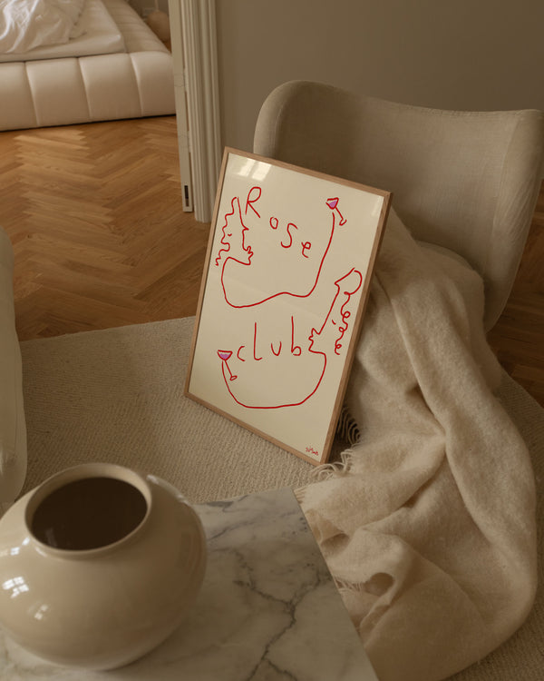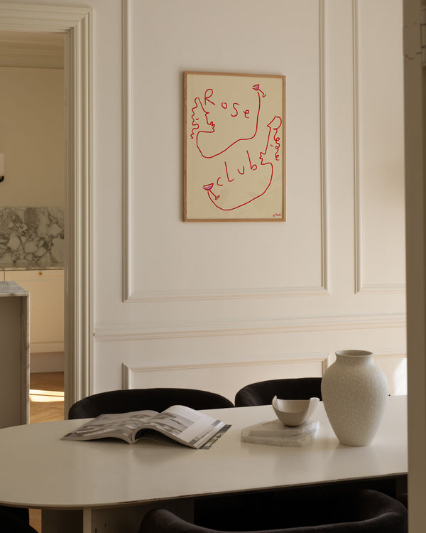 Kunstplakaten "ROSE CLUB" af kunstneren Ruby Hughes er en illustreret plakat, der er kurateret for Peléton. Kunstplakaten er produceret på kvalitetspapir, med lang levetid og detaljerig farvegengivelse.