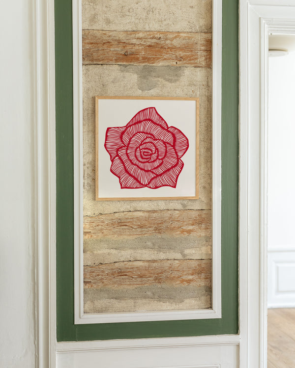 Kunstplakaten: “Rose - Red” af kunstneren Little Detroit er en illustreret plakat der er lavet eksklusivt til Peléton. Det har været betydningsfuldt for Little Detroit, at plakaten står til fri fortolkning.