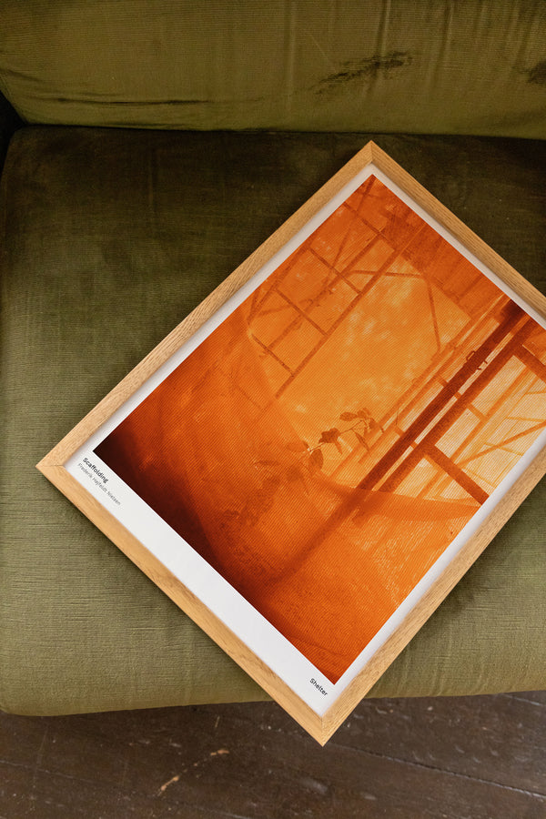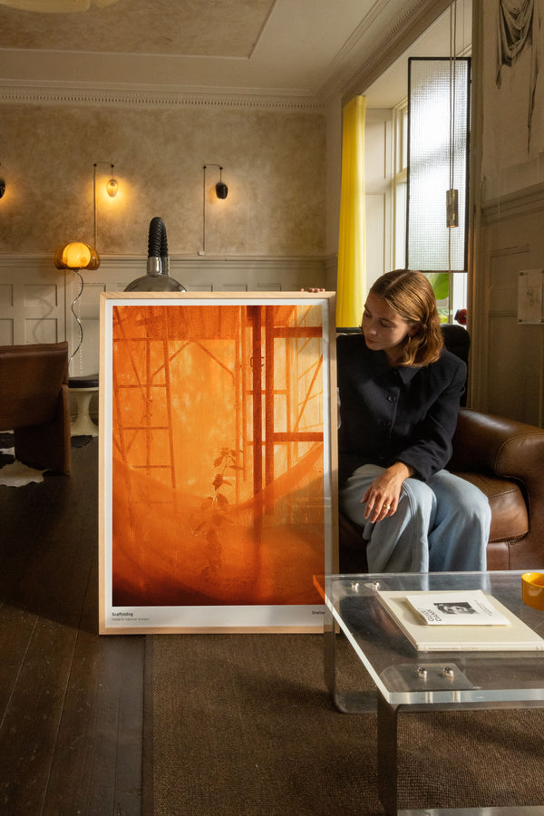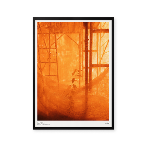Kunstplakaten: “Scaffolding Shelter” af kunstnerne Frederik Højfeldt er en grafisk illustreret plakat der er eksklusivt lavet til Peléton. Det har været betydningsfuldt for dem, at plakaten står til fri fortolkning. Dette værk er en del af en samling af eksklusive kunstplakater der udtrykker minimalisme og enkelhed.