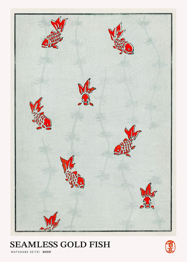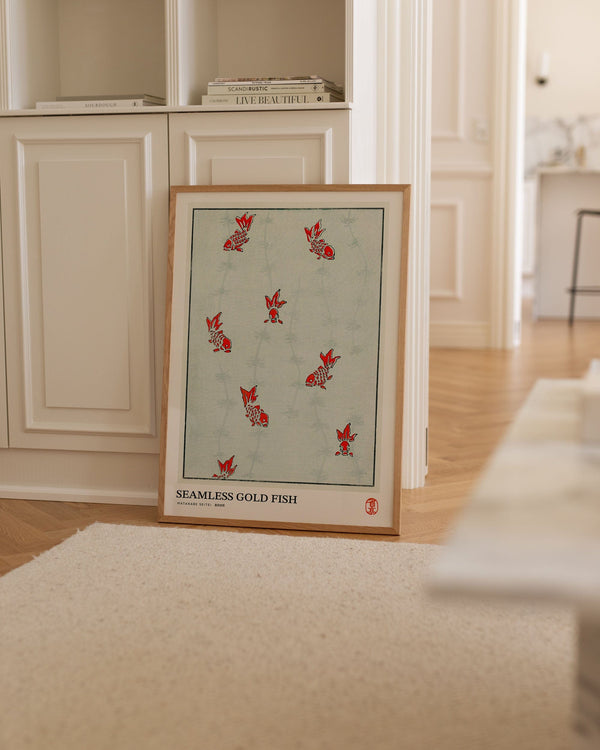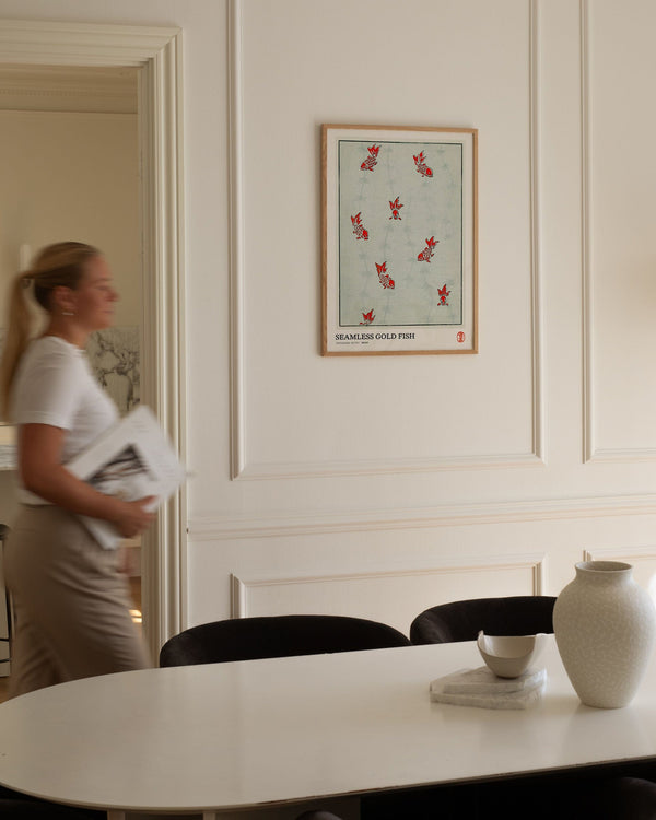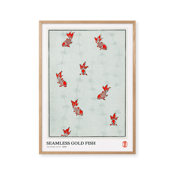 Kunstplakaten: "Seamless gold fish" af kunstneren Watanabe Seitei er en plakat, som Peléton har genskabt ud fra hans ikoniske træsnit. Denne plakatserie med Watanabe Seitei kunstplakater tager udgangspunkt i hans mest kendte værker. Denne plakat er en del af Peleton's vintage kollektion med museumslayout. Kunstplakaten er produceret på kvalitetspapir med lang levetid, høj høj gennemtræk og detaljeret farvegengivelse.
