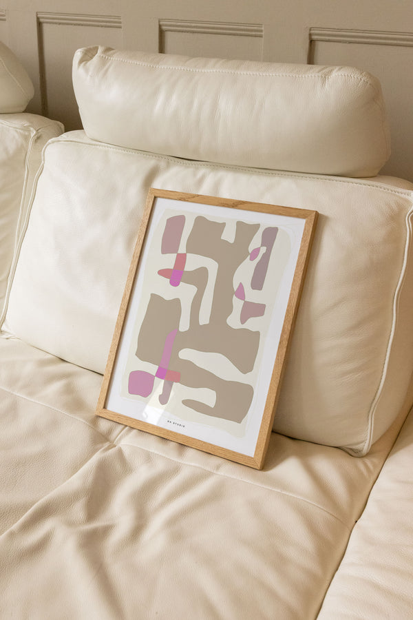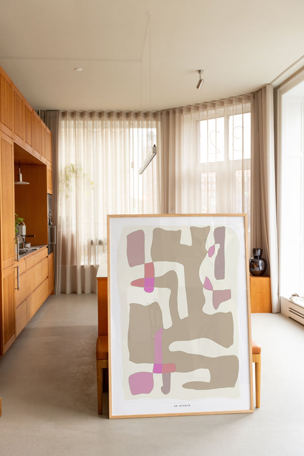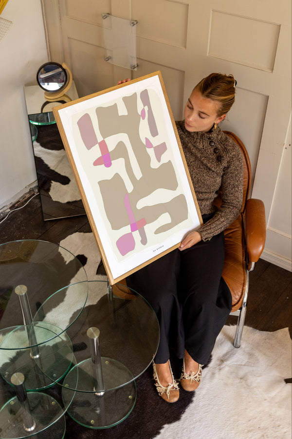 Karla Hymans kunstplakat "Seasand Coral" er en del af en farverig kollektion udviklet specielt til Peléton, og som hylder legende kompositioner og stærke farvevalg. Hendes værker er præget af en enkel og abstrakt stil, hvor form og farver spiller tæt sammen.