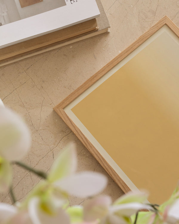 Rammerne i eg er lavet af massivt egetræ. Den mørke variant er bejdset for at opnå en dyb, varm tone, mens den sorte ramme er fremstillet af sortmalet fyrretræ med samme elegante profil.