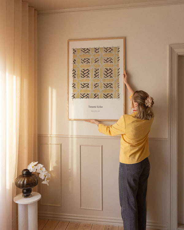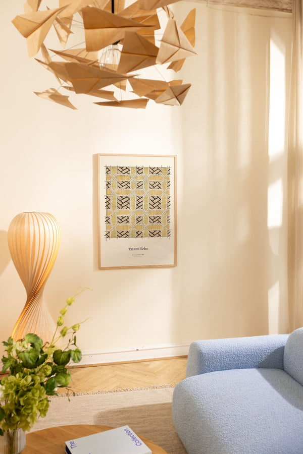 Kunstplakaten: “Tatami Echo” af kunstneren Furuya Kōrin er en abstrakt illustreret plakat, der er genskabt af Peléton. Denne plakat er en del af Pelétons vintage kollektion med museums layout. Kunstplakaten er produceret på kvalitetspapir, med lang levetid, høj gennemtræk og detaljerig farvegengivelse.