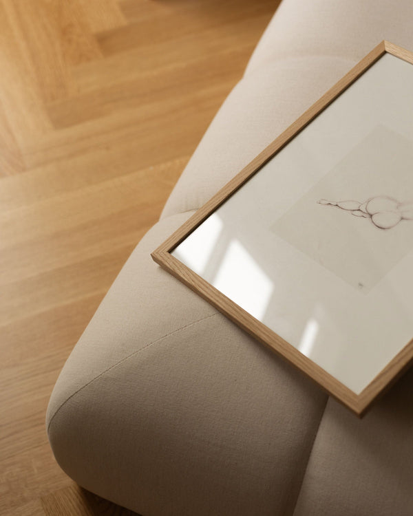 Rammerne i eg er lavet af massivt egetræ. Den mørke variant er bejdset for at opnå en dyb, varm tone, mens den sorte ramme er fremstillet af sortmalet fyrretræ med samme elegante profil.