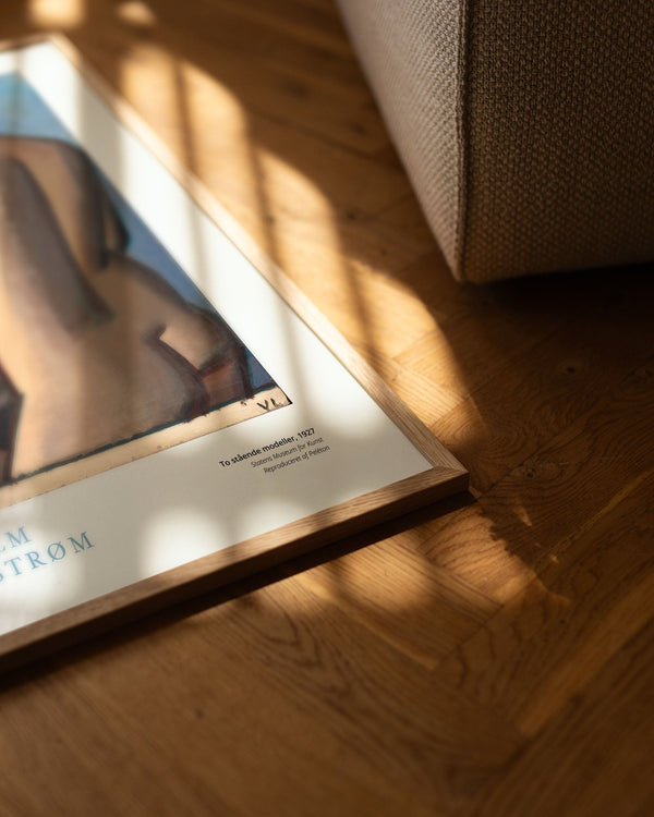 Kunstplakaten: “To stående modeller” af kunstneren Vilhelm Lundstrøm er en malet plakat, der er genskabt af Peléton. Denne plakat serie med Vilhelm Lundstrøms eksperimenterende og geometriske kunstplakater, er karakteriseret ved hans farverige men simple stil. Denne plakat er en del af Pelétons vintage kollektion med museums layout. Kunstplakaten er produceret på kvalitetspapir, med lang levetid, høj gennemtræk og detaljerig farvegengivelse.