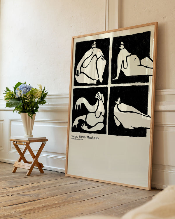 Vores kunstplakater fås i flere størrelser trykt på tykt 230g miljøcertificeret papir, så du nemt kan finde den perfekte løsning til din væg. Nogle formater ligger tæt på hinanden i størrelse, men skaber alligevel forskellige visuelle udtryk. I bunden her kan du se et udvalg af billeder der viser hvordan de forskellige plakat størrelse kan se ud i et hjem.