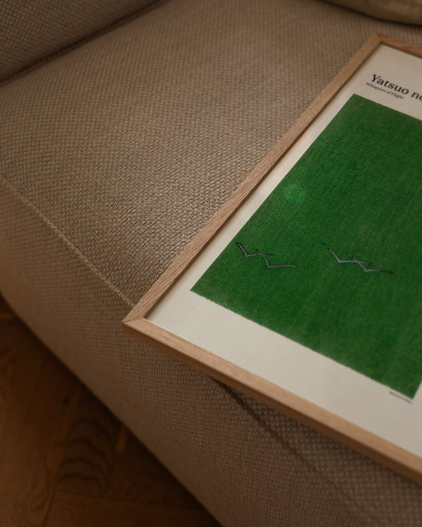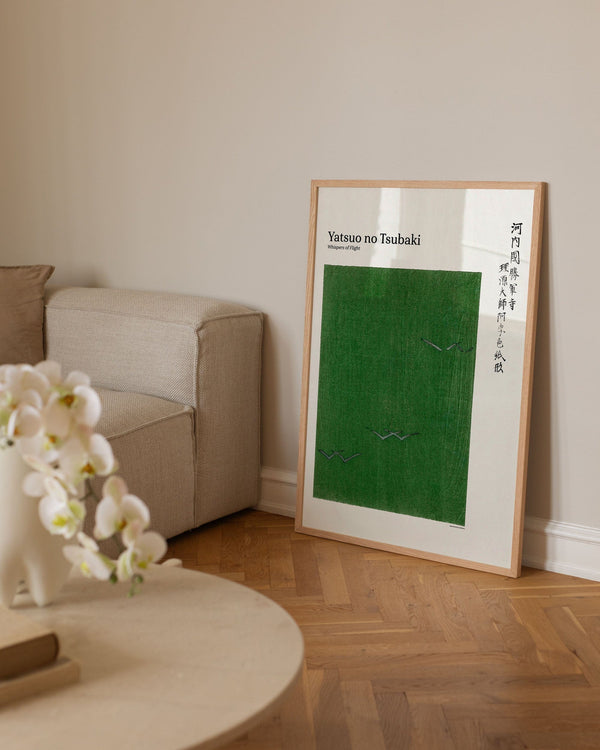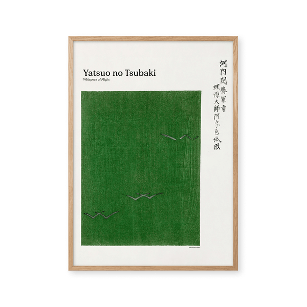 Kunstplakaten: "Whispers of Flight" af kunstneren Taguchi Tomoki er en plakat, som Peléton har genskabt ud fra hans træsnit kollektion "Yatsuo no tsubaki". Denne plakatserie med Taguchi Tomokis kunstplakater er kendetegnet ved hans farverige træsnit. Denne plakat er en del af Peleton's vintage kollektion med museumslayout. Kunstplakaten er produceret på kvalitetspapir med lang levetid, høj gennemtræk og detaljeret farvegengivelse.